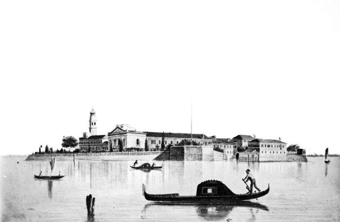 Isola di San Lazzaro degli Armeni, riproduzione di stampa, veduta di Filippi, Tomaso (XIX)