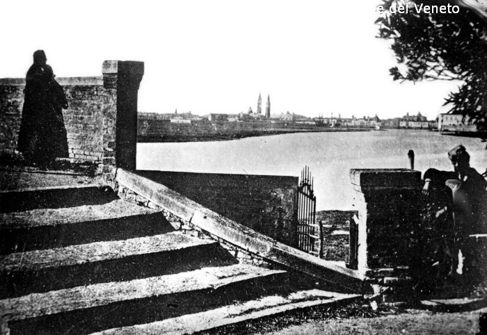 Isola di San Lazzaro degli Armeni, riproduzione di stampa, veduta verso Venezia