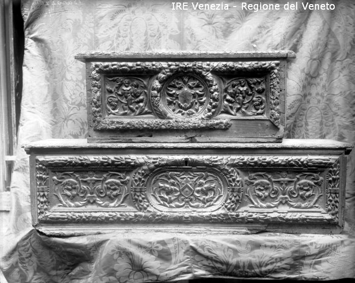 Venezia, antiquario Barozzi, cassoni scolpiti di Filippi, Tomaso (XIX)