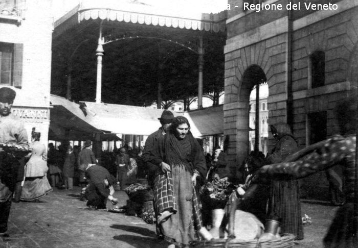 Venezia - Vita veneziana e lagunare - Scene e costumi - Mercato, negozi, bancarelle - Rialto - Campo Cesare Battisti già della Bella Vienna - Mercato coperto