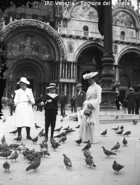 Venezia, piazza San Marco, turisti con piccioni di Filippi, Tomaso (XIX)