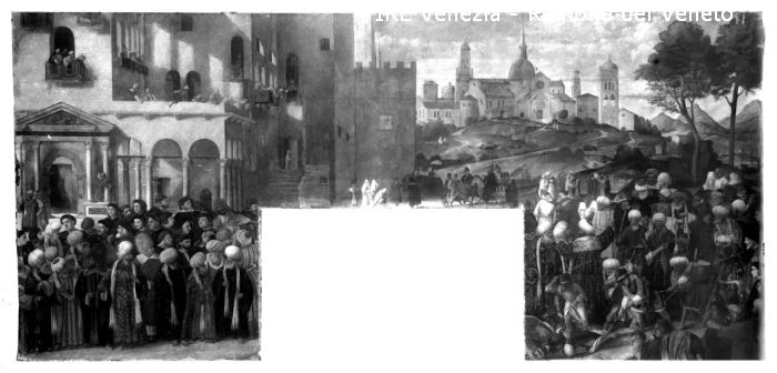 Venezia, scuola di San Marco, riproduzione dipinto, Vittore Belliniano, "Il martirio di S. Marco"