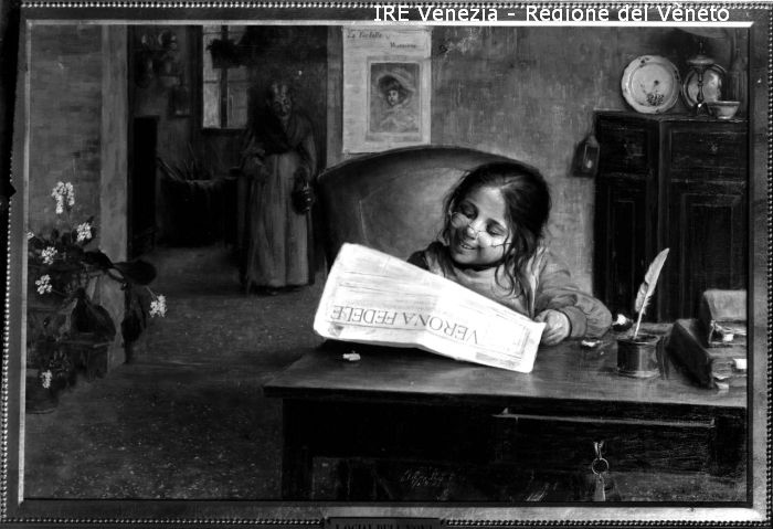 Venezia, riproduzione dipinto, Policromio Carletti (?), scena di genere di Filippi, Tomaso (XX)
