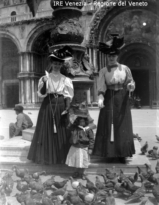 Venezia, piazza San Marco, turisti con piccioni di Filippi, Tomaso (XIX)