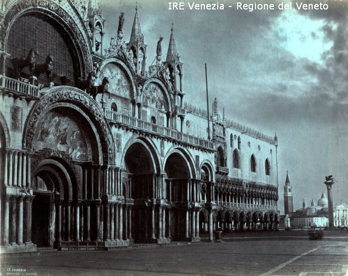 Venezia - Vedute, monumenti, luoghi - Centro storico - Area Marciana - Piazza S. Marco: ripresa da nord - Basilica di S. Marco: dettaglio della facciata, ripresa laterale - Palazzo Ducale - Piazzetta S. Marco - Isola di S. Giorgio