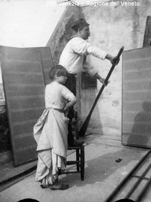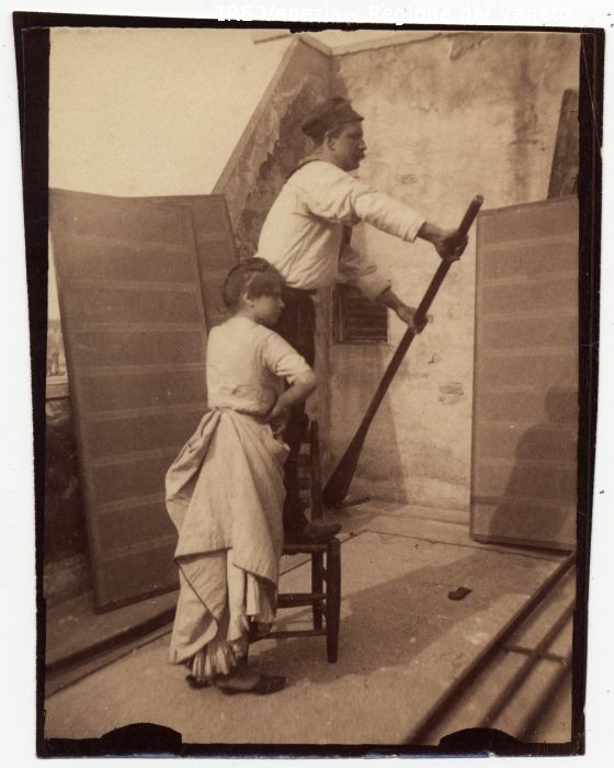 Venezia - Vita veneziana e lagunare - Scene di genere - Esterni: una terrazza - Modelli in posa - Studio su un uomo e una donna