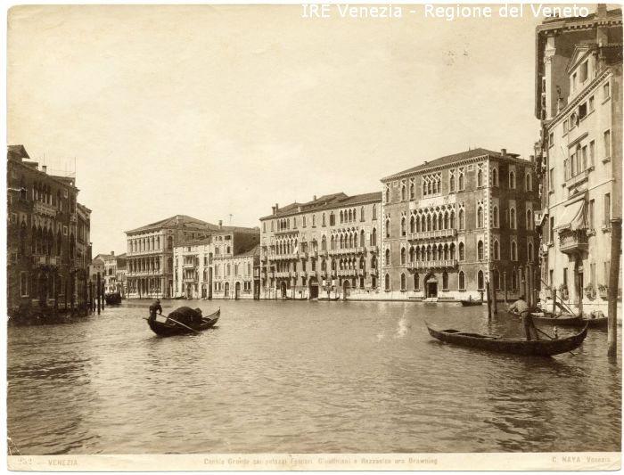 - ISCRIZIONI sul recto: nell'etichetta didascalica sotto l'immagine - 252 - VENEZIA./ Canale Grande coi palazzi Foscari Giustiniani e Rezzonico ora Brawning/ C. NAYA Venezia - a matita -