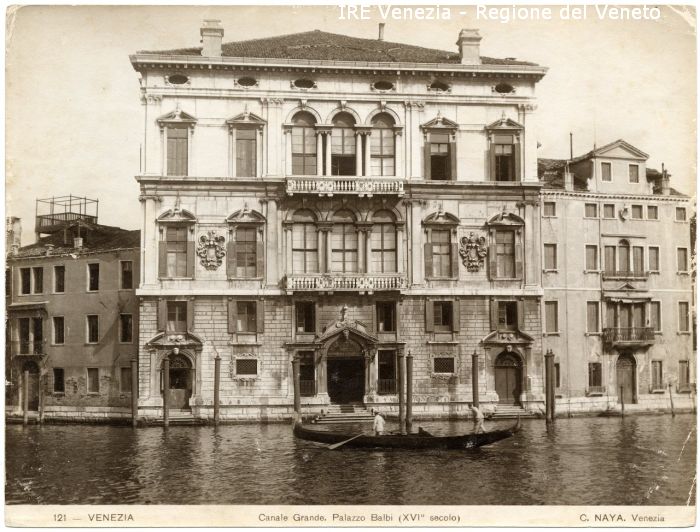 - ISCRIZIONI sul recto: nell'etichetta didascalica sotto l'immagine - 121 - VENEZIA/ Canale Grande. Palazzo Balbi (XVI° secolo)/ C. NAYA. Venezia - a matita -