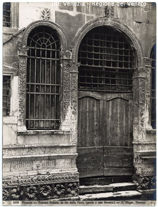 - ISCRIZIONI sul recto: nell'etichetta didascalica sotto l'immagine: al centro - 2039 Venezia - Palazzo Guizetti in rio della Fava, (porta e una finestra) - C. Naya, Venezia - fotografica -
