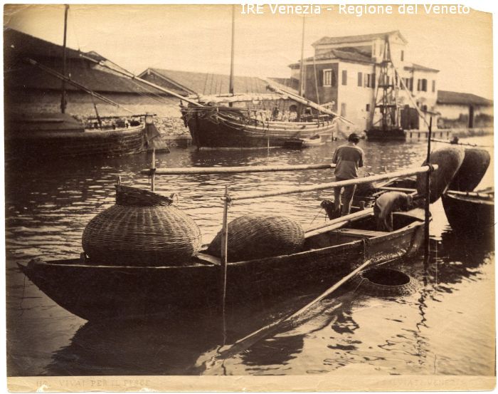 Venezia - Vedute, monumenti, luoghi - Isole e Laguna - Giudecca - Rio del Ponte Lungo - Vivai per il pesce - Imbarcazioni - Barche da pesca - Vieri - Pescatori: due