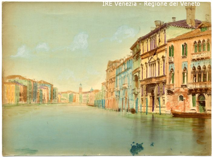Venezia - Vedute, monumenti, luoghi - Centro storico - Canal Grande (dalla "Volta di Canal" verso Rialto) - Riva del Vin - Riva del Ferro - Palazzo Dolfin Manin - Ponte di Rialto - Pontile di Rialto
