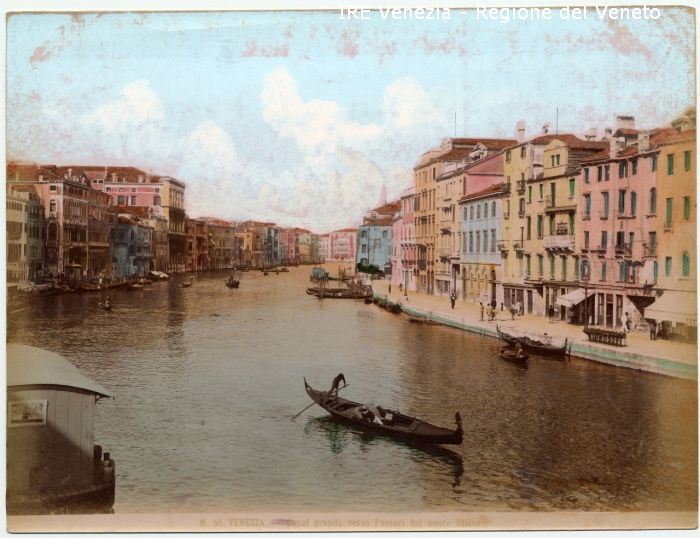 - ISCRIZIONI sul recto: nell'etichetta didascalica sotto l'immagine: al centro - N. 55 VENEZIA - Canal grande verso Foscari dal ponte Rialto - fotografica -