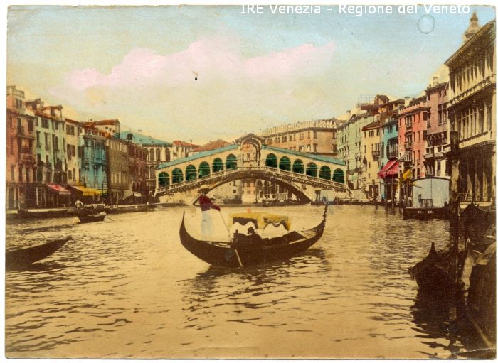 Venezia - Vedute, monumenti, luoghi - Centro storico - Canal Grande - Ponte di Rialto - Riva del Vin - Riva del Ferro - Pontile di Rialto - Gondole - Gondolieri che remano