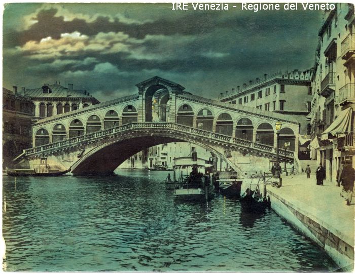 Venezia - Vedute, monumenti, luoghi - Centro storico - Canal Grande - Ponte di Rialto - Riva del Ferro - Pontile di Rialto - Persone - Imbarcazioni - Vaporetto - Gondole