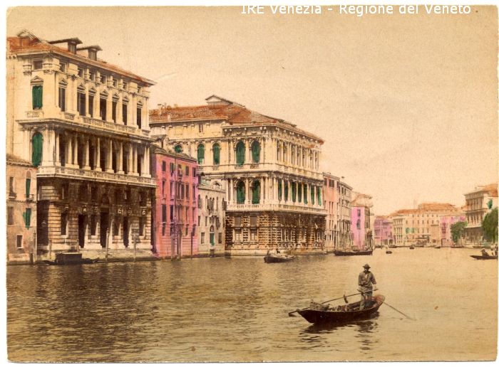 Venezia - Vedute, monumenti, luoghi - Centro storico - Canal Grande (da Rialto verso la Stazione) - Ca' Corner della Regina - Palazzo Correggio - Palazzo Sangiantoffetti-Donà - Ca' Pesaro - Imbarcazioni - Gondole - Uomo che rema