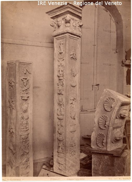 - ISCRIZIONI sul recto: nell'etichetta didascalica sotto l'immagine - [...] 80 - Venezia -/ Pilastri - rinascimento/ Rip. int. C. Naya V [...] - fotografica -