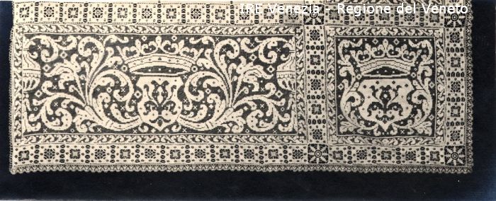 Venezia - Vita veneziana e lagunare - Attività private - Laboratori e Ditte di "Specialità veneziane" - Merletti, campionari anonimi vari - Tenda a bandiera
