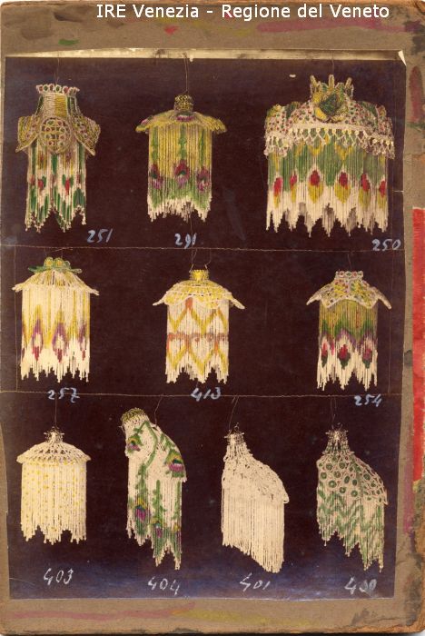Venezia - Vita veneziana e lagunare - Attività private - Laboratori e Ditte di "Specialità veneziane" - Artigianato: vetrerie - Società Veneziana delle Conterie - Campionario - Oggetti di vetro: dieci abat-jour di perline