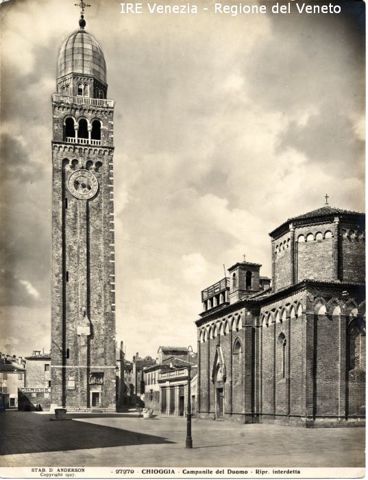 - ISCRIZIONI sul recto: nell'etichetta didascalica sotto l'immagine - STAB. D. ANDERSON/ Copyright 1927./ - 27279 - CHIOGGIA - Campanile del Duomo - Ripr. interdetta - fotografica -