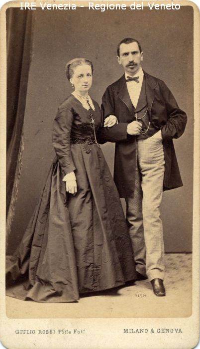 Ritratti: in studio; figura intera - Coppia, in piedi: donna; uomo con baffi