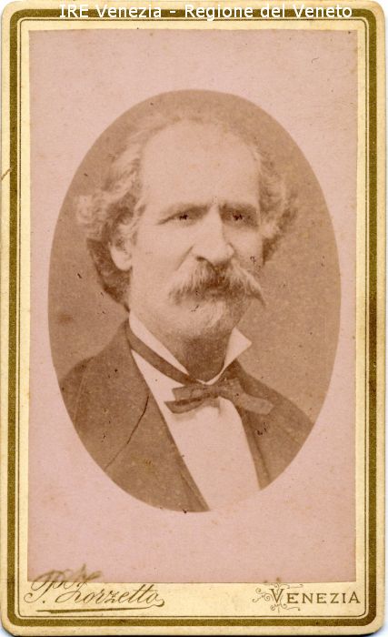 Ritratti: in studio; mezzo busto; frontale - Uomo: con baffi e pizzo - Vestiario: giacca scura, camicia bianca; cravattino - Sfondo