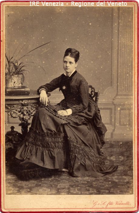 - STEMMI sul verso - commerciale - Marchio - Fratelli Vianelli - Fratelli Vianelli/ Fotografi di S. M. il Re d'Italia/ e delle LL. AA. RR. il Principe e la Principessa/ di Galles e di Germania./ Decorati e premiati più volte./ Venezia, S. Zaccaria Campo S. Provolo N.° 4704.