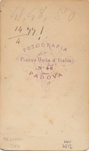 - STEMMI verso: al centro - commerciale - Marchio - Marchio tipografico con la scritta "Fotografia/ Piazza Unità d'Italia/ N. 46/ Padova"