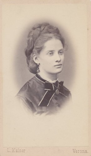 - STEMMI sul supporto secondario: verso - dell'autore - Marchio - Marchio tipografico dell'autore in cui, entro un'elegante decorazione, si trova la scritta: "Studio fotografico/ premiato/ Lodovico Kaiser/ Verona/ Palazzo Portalupi Corso Cavour".
