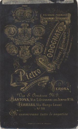 - STEMMI Sul supporto secondario: recto: in basso - dell'autore - Marchio - P. Codognato Verona/ Ferrara- Mantova