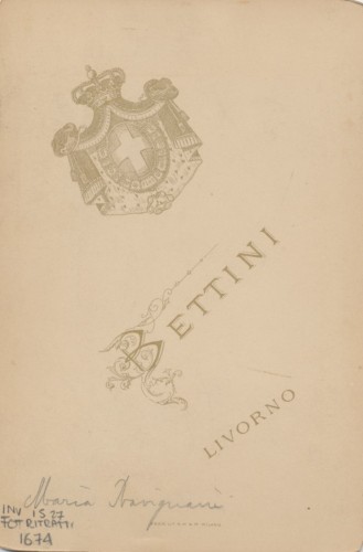 - STEMMI Sul supporto secondario: verso - dell'autore - Marchio - Marchio dell'autore comprendente uno stemma crociato ed incoronato e la scritta "Bettini/ Livorno".