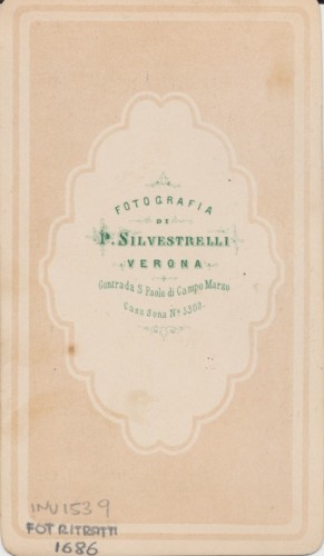 - STEMMI Sul supporto secondario: verso: al centro - dell'autore - Marchio - Fotografia/ di/ P. Silvestrelli/ Verona/ Contrada S. Paolo di campo Marzo/ Casa Sona N° 5303.