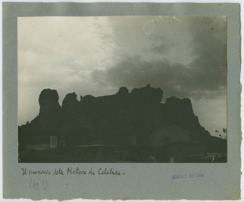 - ISCRIZIONI supporto secondario: recto: in basso a sinistra - Meteore. Il massiccio delle Meteore da Calabaca. - a matita -