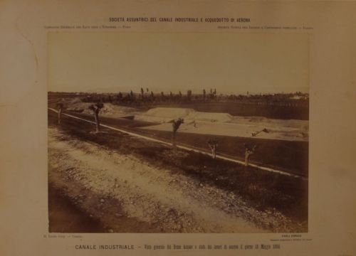 - ISCRIZIONI sul supporto secondario: recto: in basso: a sinistra - CANALE INDUSTRIALE - Vista generale del Basso Acquar e stato dei lavori di scarico il giorno 10 Maggio 1884. - a matita -