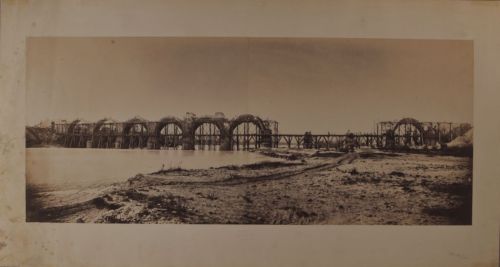 - ISCRIZIONI all'interno del passepartout. in basso: al centro - VIADOTTO SULLA FERROVIA VERONA-BOLZANO - 1857 - a matita -