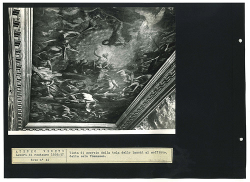 Ateneo Veneto Lavori di restauro 1956-57: foto n° 42: Vista di scorcio della tela dello Zanchi al soffitto della sala Tommaseo.