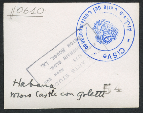 - ISCRIZIONI supporto primario: verso: in basso - Habana/ Moro [sic] Castle con golette - a matita -