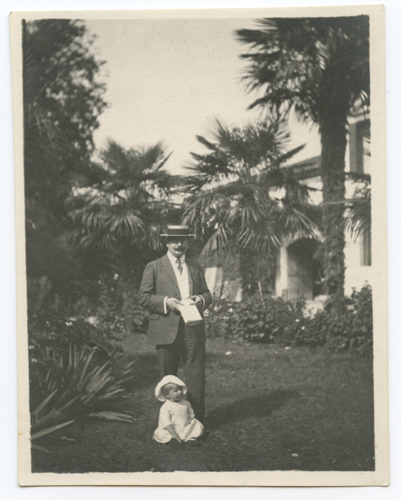 Carlo Pasinetti con Francesco in giardino
