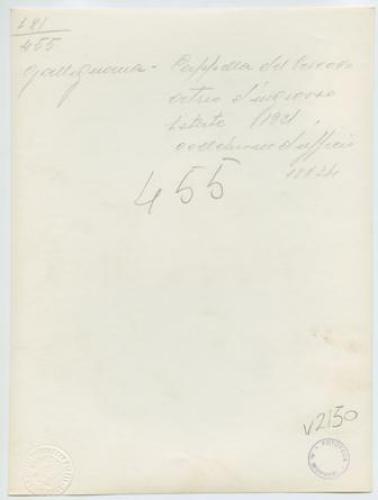 - NOTIZIE STORICO CRITICHE La fotografia fa parte dell'insieme archivistico denominato "Venezia Giulia" (tre cartelle: V. VIII, V. IX, V. X), nello specifico, è conservata all'interno della cartella V. IX. E' stata realizzata nell'estate 1921 da Pietro Opiglia, che dal 1908 al 1947, svolse il ruolo di fotografo presso il Museo Civico triestino e del quale si serviva l'Ufficio Belle Arti della Venezia Giulia durante le proprie campagne fotografiche. In questo caso, l'Ufficio Belle Arti aveva promosso una campagna ricognitiva circa le opere d'arte presenti sul territorio transfrontaliero che oggi comprende il Friuli Venezia Giulia, la Croazia e la Slovenia. Si ricorda, inoltre, che Antonio Morassi svolse il ruolo di funzionario sovrintendente presso l'Ufficio Belle Arti della Venezia Giulia dal 1920 al 1925.