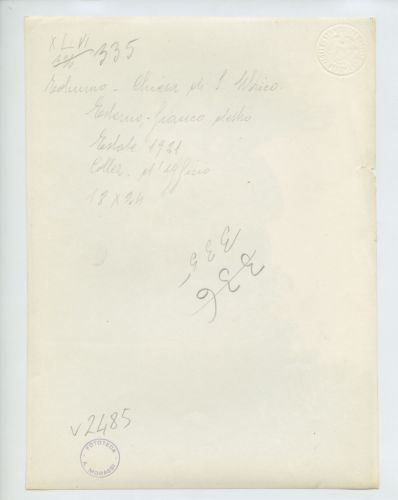 - ISCRIZIONI supporto primario: verso: a sinistra - Tolmino - Chiesa di S. Ulrico/ Esterno, fianco destro/ Estate 1921./ Collez. d'ufficio/ 18x24 - a matita -