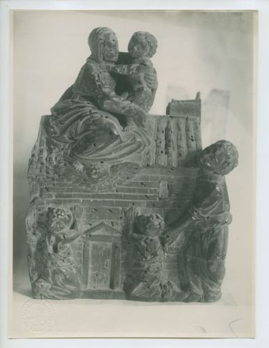 - NOTIZIE STORICO CRITICHE La fotografia fa parte dell'insieme archivistico denominato "Venezia Giulia" (tre cartelle: V. VIII, V. IX, V. X), nello specifico, è conservata all'interno della cartella V. IX. E' stata realizzata nel 1922 da Pietro Opiglia, che dal 1908 al 1947, svolse il ruolo di fotografo presso il Museo Civico triestino e del quale si serviva l'Ufficio Belle Arti della Venezia Giulia durante le proprie campagne fotografiche. In questo caso, l'Ufficio Belle Arti aveva promosso una campagna ricognitiva circa le opere d'arte presenti sul territorio transfrontaliero che oggi comprende il Friuli Venezia Giulia, la Croazia e la Slovenia. Antonio Morassi svolse il ruolo di funzionario sovrintendente presso l'Ufficio Belle Arti della Venezia Giulia dal 1920 al 1925. La fotografia fa parte di una serie realizzata durante la Prima mostra d'arte popolare italiana, che si tenne a Trieste nel 1922.