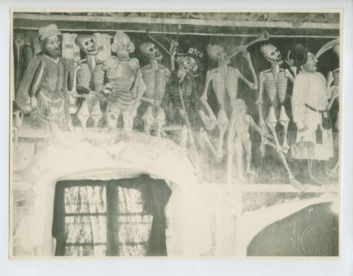 Vermo - Chiesa di Santa Maria delle Lastre, affreschi della navata: danza macabra.