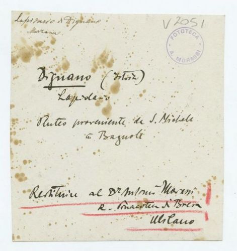 - ISCRIZIONI sul supporto primario: verso: in alto a sinistra - Lapidario di Dignano/ [...] - a matita -