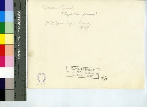 - ISCRIZIONI sul supporto primario: verso - Giacomo Guardi/ "Capriccio piccolo"/ DrP Stramezzi-Crema/ 1948 - Claudio Emmer/ Fotografo-Via Bagutta, 24/ Telef 76575-Milano - 15991 - Fototeca-A. Morassi - 15.925 - Mittente. Morassi, Antonio e collaboratori. Collaboratori dell'Archivio Fototeca Antonio Morassi -