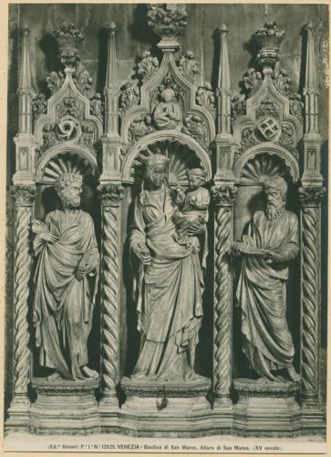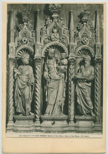 - ISCRIZIONI supporto primario: recto: in basso - (Ed.ne Alinari) P.e I.a N° 12925. VENEZIA - Basilica di San Marco. Altare di San Marco (XV secolo.) - a matita -
