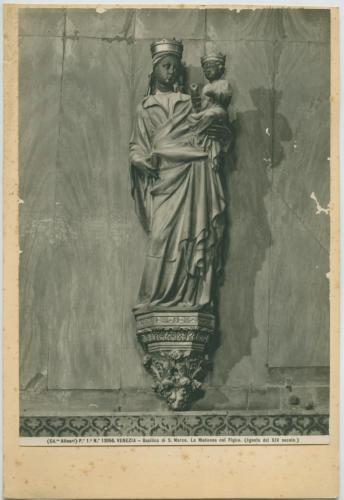 - ISCRIZIONI supporto primario: recto: in basso - (Ed.ne Alinari) P.e 1.a N° 13056. VENEZIA - Basilica di San Marco. La Madonna col Figlio (Ignoto del XIV secolo.) - a matita -