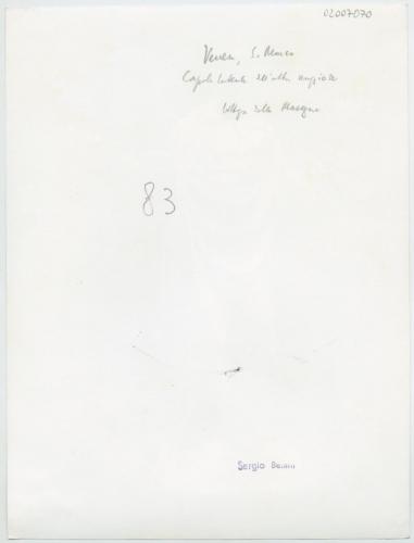 - ISCRIZIONI supporto primario: verso: in alto a destra - Venezia, S. Marco/ cappella laterale dell'altare maggiore/ bottega delle Masegne - a matita -