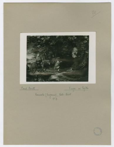 - NOTIZIE STORICO CRITICHE La fotografia, che riproduce la Fuga in Egitto dipinta da Paul Brill o Bril (1554-1626) secondo Antonio Morassi, fa parte dell'insieme archivistico denominato "Collezione Züst" (due cartelle: C. XI e C. XII), nello specifico, è conservata all'interno della cartella C. XII. Trattasi del frutto dello studio condotto da Antonio Morassi sulla collezione di Giovanni Züst nel 1957. La fotografia è montata su cartoncino.
