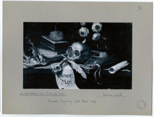 - NOTIZIE STORICO CRITICHE La fotografia, che riproduce una natura morta di scuola tedesca della seconda metà del Seicento, fa parte dell'insieme archivistico denominato "Collezione Züst" (due cartelle: C. XI e C. XII), nello specifico, è conservata all'interno della cartella C. XII. Trattasi del frutto dello studio condotto da Antonio Morassi sulla collezione di Giovanni Züst nel 1957. La fotografia è montata su cartoncino.