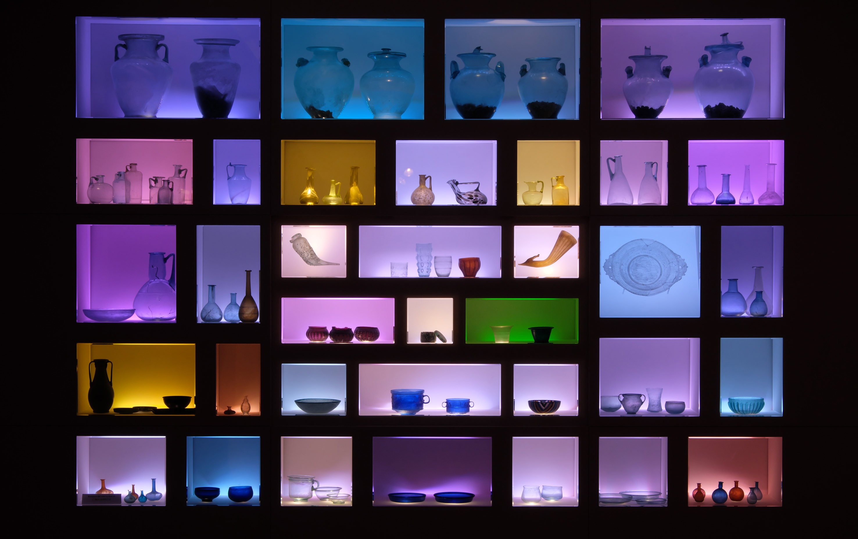 La vetrina dei vetri romani del Museo archeologico nazionale di Adria espone reperti da collezioni provenienti dalla città e dal suo territorio. Progettata dall'arch. Loretta Zega e dallo Studio Pasetti Bombardella in occasione del riallestimento del museo condotto tra il 2004 e il 2009 e finanziata dalla Fondazione Cassa di Risparmio di Padova e Rovigo, la vetrina è intesa come accorgimento allestitivo per quello che è un punto di eccellenza archeologica del museo. Qui, una sofisticata tecnologia di illuminazione a LED permette la regolazione puntuale dell’intensità e della colorazione delle fonti luminose di ogni cella, secondo scenari a regia variabile che si modificano in maniera dinamica.