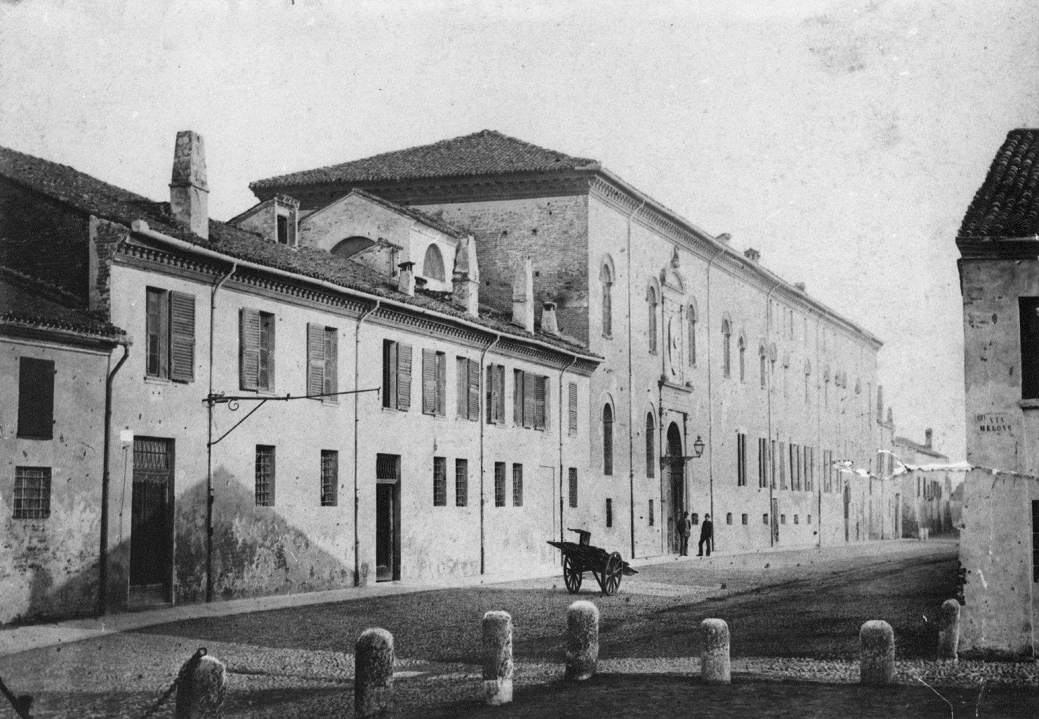 Paolo Zappaterra, Ferrara – Palazzo Schifanoia – facciata palazzo e via Scandiana, 1974, gelatina ai sali d'argento/carta, 0800634770